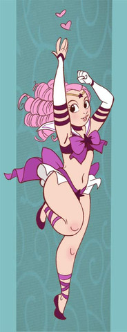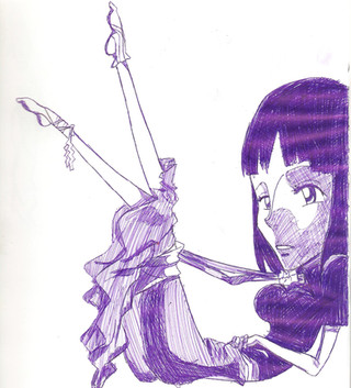 Ooo...neat! I love the pose and expression. It reminds me loosely of the Time-Space Witch from xxxHolic (I forget her name at the moment). One must wonder if she has to adopt such a strange pose to balance gravity out, what with those painful-looking shoes...