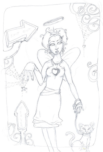 I'm in this psychotic mood lately.. and I started doodling like this one, on my (very importaint) papers at school... and then the other evening I just sat down and made one on "real" paper... and *wupti* it was born!!!