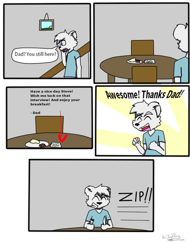 A puppy boy shows his doggie daddy a cool new trick he learned!