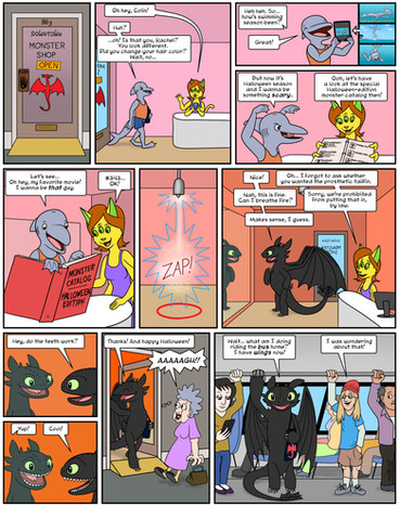 There's this shop downtown called the Downtown Monster Shop. There's a Monsterizer there, just like on Monster Cruises, which can turn you into any kind of creature the shop owner can program it to.Posted using PostyBirb
