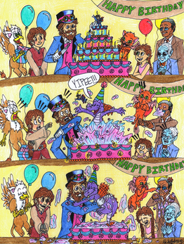 Saw that movie "Luck" recently. Fun to watch, but kind of convoluted and hard to follow. But the luck factory is run by this cool-looking dragon with four arms! And I decided to draw her dressed like Willy Wonka (the Gene Wilder one, not the Johnny Depp one) so here!