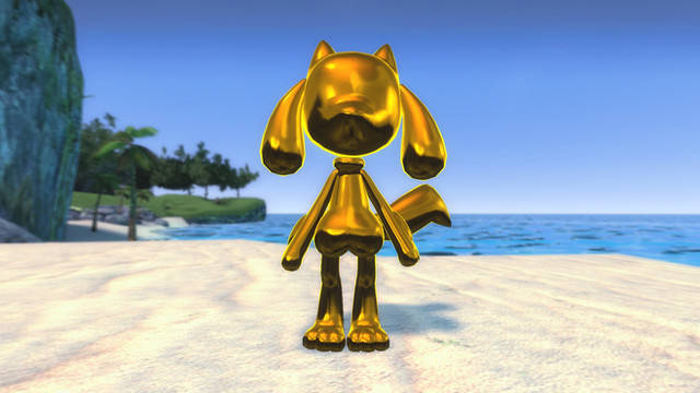 A Riolu has just found a metal box and has suddenly turned metal.Gold version