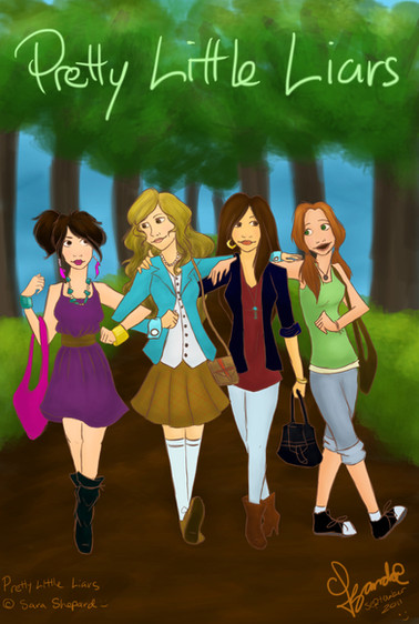 This was something I got inspired to do yesterday for some reason, I was looking at the art for pretty little liars, an I didn’t see much drawn art, so I guess I wanted to do some myself. But anyway, I ended up putting a little more then eight hours into this, so I hope people will enjoy my efforts xDSo basically, from left to right, there’s Emily, Aria, Spencer, and Hanna. In the back is Ali. For those of you who watch the show, your probably like, ‘hey they don’t look like that!’ but in the book they kinda do