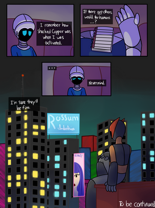 This was a lot funnier in my head not gonna lieBased off a really dramatic scene in the I, Robot movie. I wrote OMAM the way it is because I'm super sick of how robots are treated in western sci-fi, like how everyone thinks they'll overthrow humanity or some crap. Then there are some people who write it as "oh no they're actually just like us but we still hate them because bias" which is like, okay I can get behind that BUT they never show the robots acting like real people! Even Detroit has this problem where Markus and Kara just have these really bland personalities, no likes or dislikes, no sass. At least Connor shows some semblance of having interests by trying to match Hank but it technically doesn't count because he was copying a human being. Literally the only story (made in western regions) that I can think of that portrays robots like actual people is Overwatch. Bastion and Zenyatta have very defined personalities, and at least Orisa has an excuse for being a month old. Even Lynx from the Zarya comic had flair and sass to him.