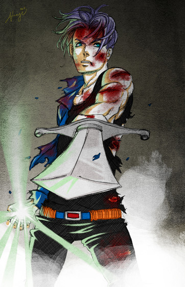 Awesome I love the fact that you portrayed him with purple hair instead of blue. I prefer the dbz version