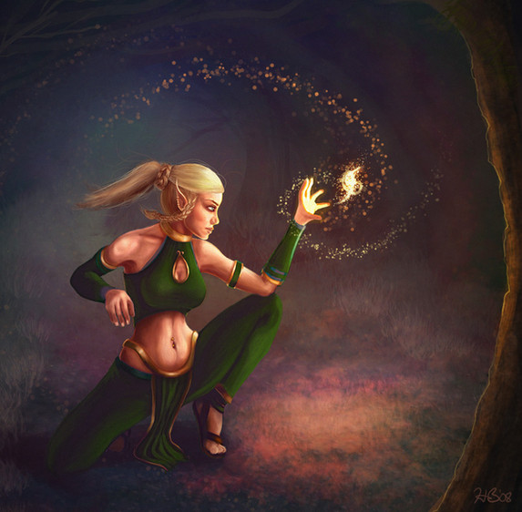 Love the colour! I think her eyes could have been a bit more expressive or perhaps viewing her summoned birdies, but overall it's great and dynamic!