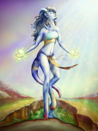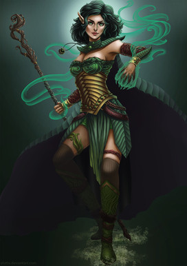 I made a horribly undignified noise of delight when I realised that she was a planar druid. Also really love the shading on her stomach and the colours you used--very hellish and surreal.