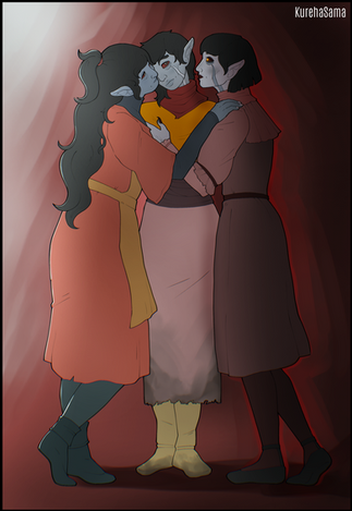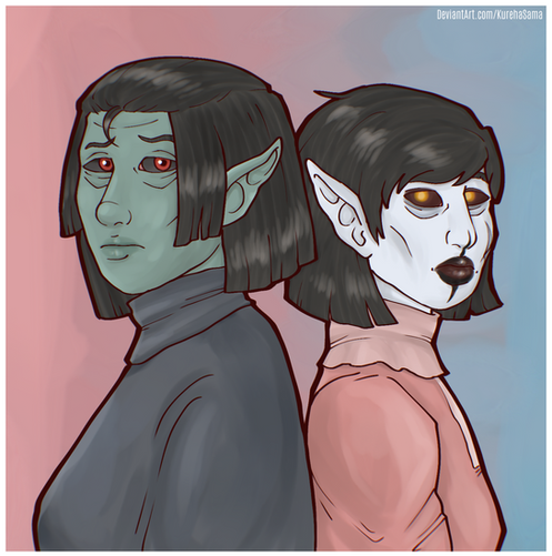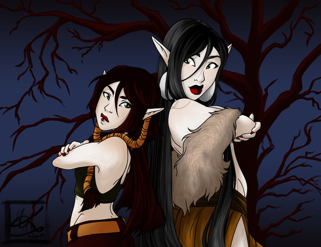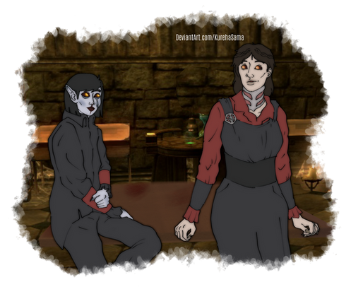 "We might not be sisters by blood, but we are sisters by pain."Just a bit of Elneri and Serana! ^^ I'm really proud of this pose. ^^