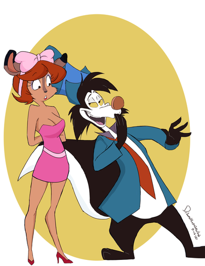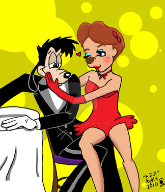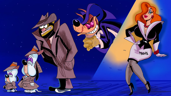 I've talked about there are some precious feelings when a cartoon character with a sexy woman like Roger Rabbit and Jessica Rabbit.If Secret Squirrel and a woman such as Bond Girl together, that must be great. I wanted to draw that.