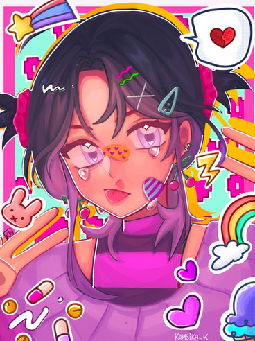 #brightcolors #colorful #crazy #cuteanimegirl #digitalart #haha #stars #kawaiiadorable #idkwhatelsetotag