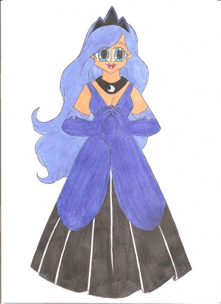 More human pony art, this time it's Luna again! So a while back, I wanted to redraw Luna because I redrew Celestia, and it feels incomplete without a Luna drawing....also, because it's October. Anyways, so I did end up drawing her during my psychology class, and I ended up liking the results, especially her hair. Originally, I was going to post up a Gilda picture, but the drawing didn't look as good and I wanted to post up Luna before the month ended.Colored in GIMP