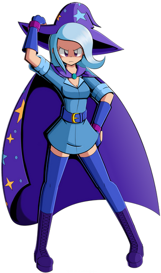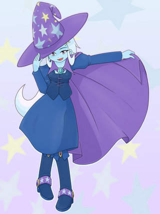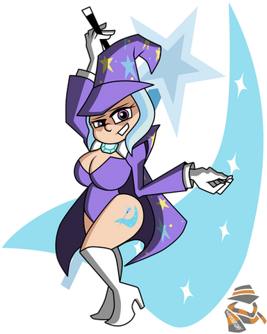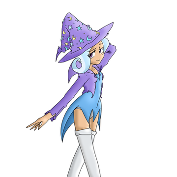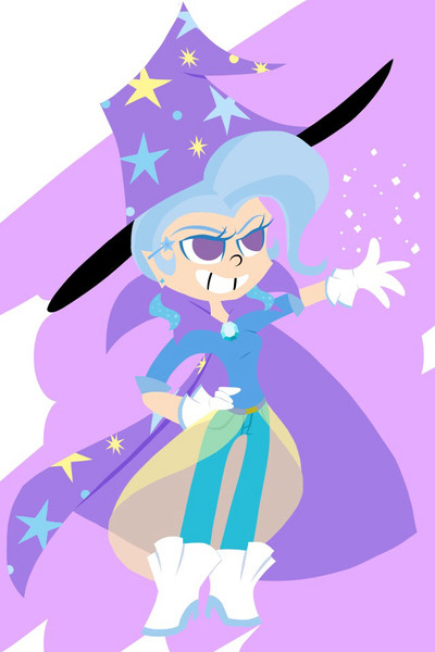 This is easily the best humanized Trixie I've ever seen. Everything, from her hat down to the thigh highs absolutely screams Trixie. The fingerless gloves are a really nice touch, and her outfit itself is just all kinds of cute. I dunno what it is about the rolled up sleeves, but they seem to give off the impression that she's gonna dazzle whoever's watching. Excellent work!