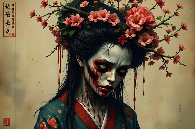 #digitalart #horror #portrait #digitalpainting #macabre #anime #characterdesign #beauty #asianart #asianbeauty #characterconcept #characterillustration #flowers #plants #portraitgirl #surrealism #zombiegirl