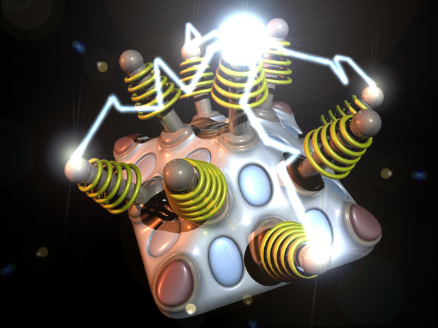 ItΒ΄s a concept for a Remote Controlable Ball. It works with 3 "dynamic unbalance" modules (red). Every single module is driven by a single electro engine. These are speed controlable. (yellow cable) The core of this hole system is the "gyro stabilizer" sensor. (the transclucent cylinder in the middle) With the help of a metal sphere in the middle of this element and a lot of sensors on the outside (the black dots) this module can realize within split seconds how the ball is positioned at the moment. With this information, the electronic is able to control the influence of every single unbalance unit of the ball, so that it can be controlled by the remote control. This could be really really interesting games I think...
