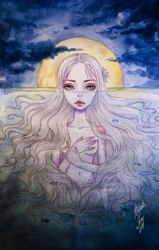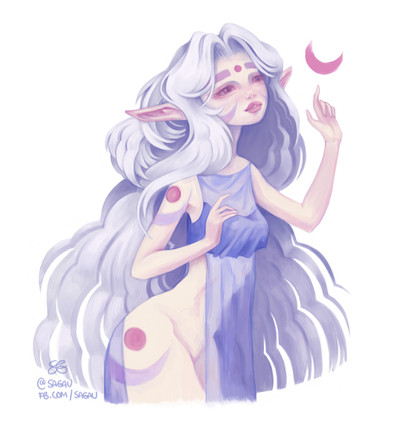 #horns #animestyle #digitaldrawing #littlegirl #scenery #whitehair #longhairgirl #fullmoonnight