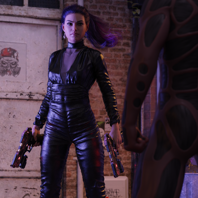 #3dart #3dfemale #browneyes #daz3d #dazstudio #digitalart #longhair #3dartwork #cyberpunkgirl #armedwoman #genesis8female #dazirayrender