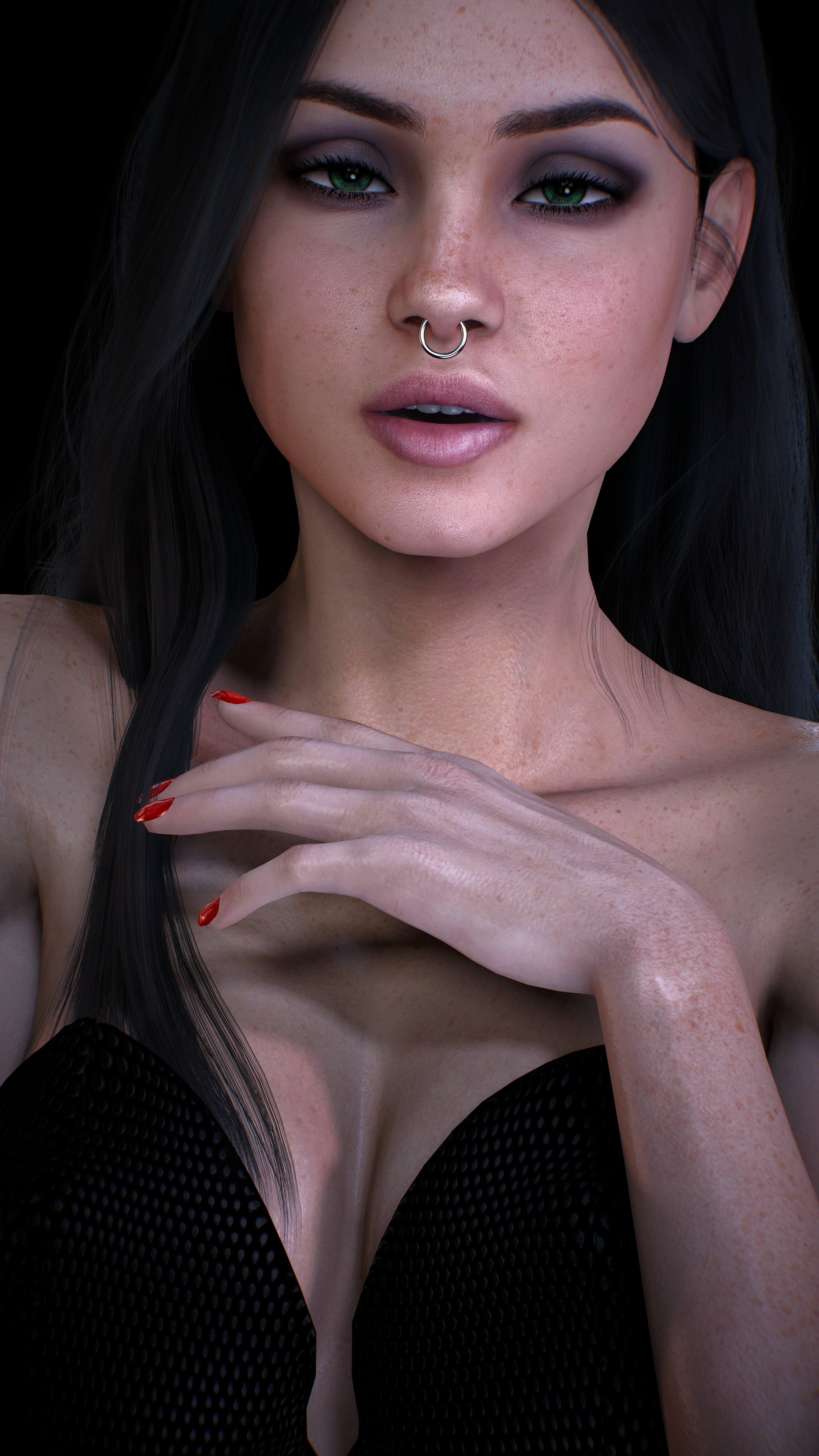 #3dart #3dfemale #blackhair #daz3d #dazstudio #digitalart #freckles #greeneyes #longhair #portrait #portraitbeauty #3dartwork #blacklingerie #freckledgirl #freckledface #genesis8female #dazirayrender