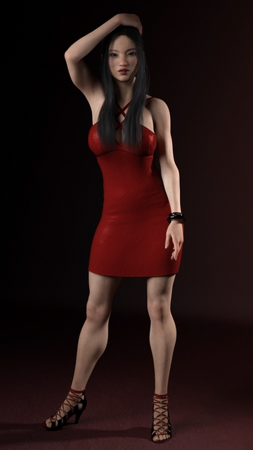 #3dart #3dfemale #blackhair #daz3d #dazstudio #digitalart #longhair #portrait #portraitbeauty #reddress #shortdress #3dartwork #genesis8female #dazirayrender
