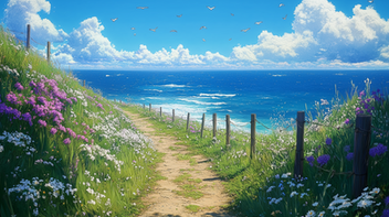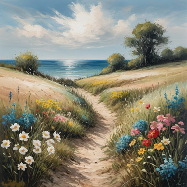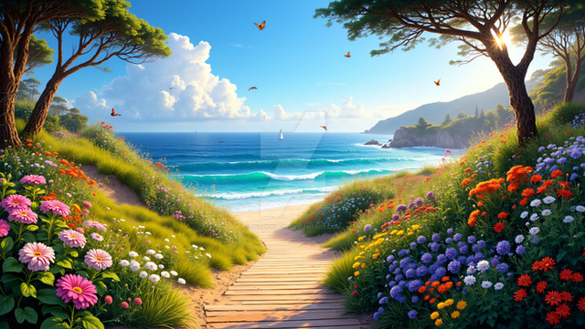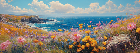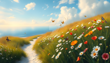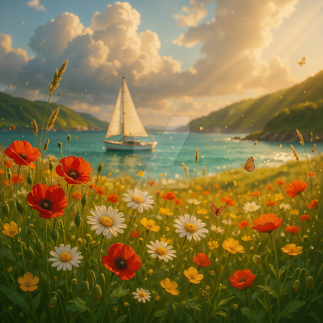 #digitalart #sky #wallpaper #sea #beach #daisy #fieldofflowers #flowers #landscape #poppies #romanticism #seascape #wildflowers