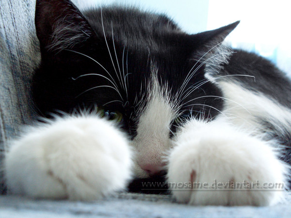 BTW: The picture isn't out of focus; focusing on the paws was a conscious decision. Consider it a portrait of her paws.