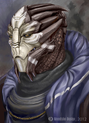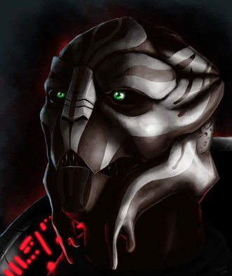 Wow. That is one of the most intriguing turian portraits I've seen so far! You captured it all so perferctly, those rather menacing features and that birdlike stare. Lovely tattos as well! Gotta fave this right away.