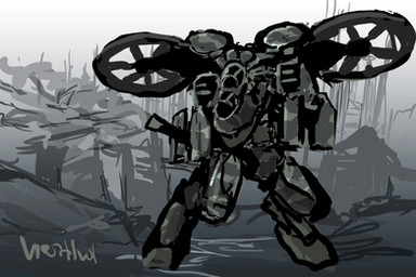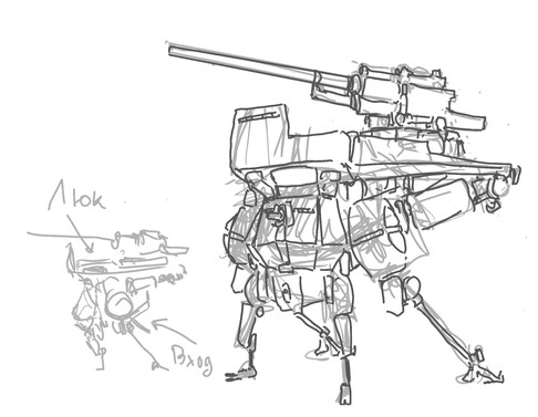 Part of a larger WIP doodle, the speakers were pretty random, i've just always loved the idea of war machines built around massive sonic weapons or shockwaves, but i figure these are to deal with local wild life, either to confuse them or to draw them out.Related content