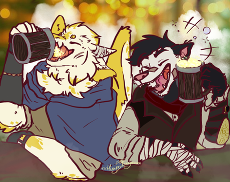 A little collab between CH0C0DILE and I of Theo and her character Frank as a half-dragon (on his mother's side) and gnoll, respectively. I did the sketch + lines and she did the colors!Related content