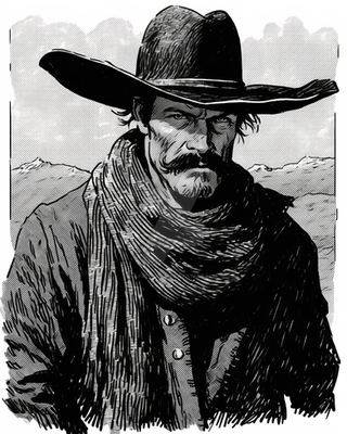 #frankmiller #twocolors #cowboynoir #monochromewesterntribute #blackandwhitecowboyart #frankmillerhomage #shadowyoutlaws #neonoircowboy #grittygunfights #inksplatteredwildwest #blackandwhite #comicbookart #gifart #western