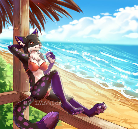#anthro #beach #bikini #cat #ocean #palm #saber #sea #summer #sunny #swimsuit #water