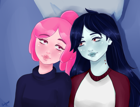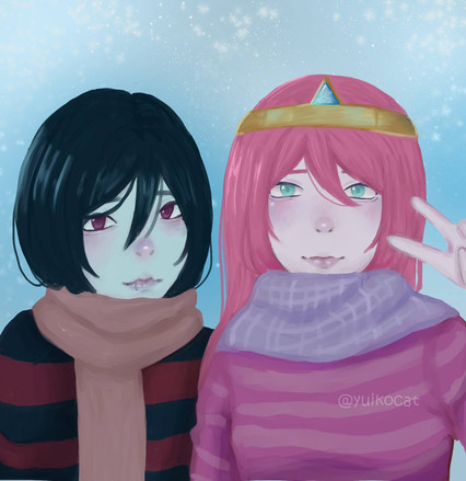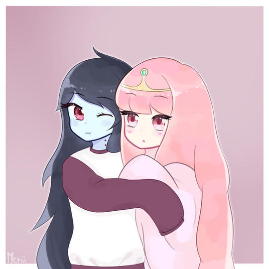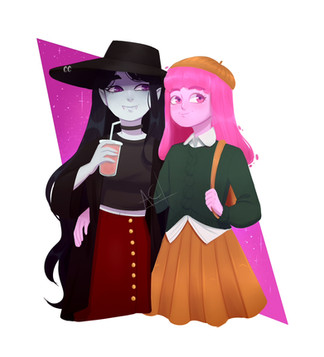 This is so cute! Can you draw Princess Bubblegum and Marceline dressed as pigs with fake pig noses.