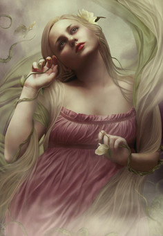 this is a lovely piece, I really like the bottom third for some reason. With the flowers and the swirling part around her feet it is just mesmerizing. very nicely done.