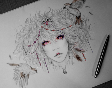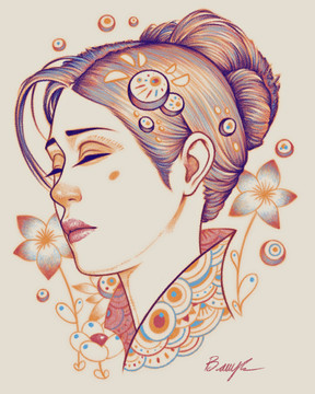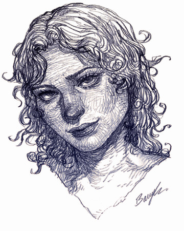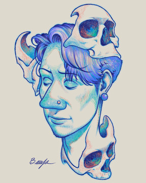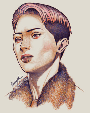 A portrait drawing where I experimented with a cooler color scheme.