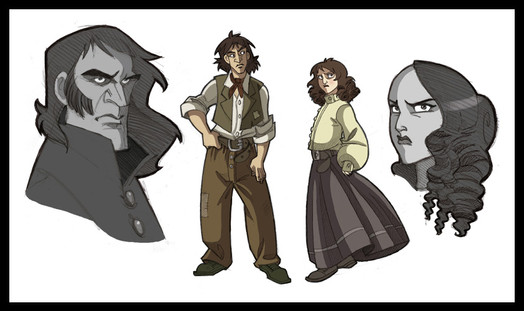 I totally would...well, if I understood French. The composition and perspective really give it an unsettling edge. It kind of makes me think of the illustrations in the Series of Unfortunate Events. Everything is disconcerting and possibly a little dangerous. Also you've really given us a sense of the characters. Good luck with the book and I can't wait to see a finished cover.