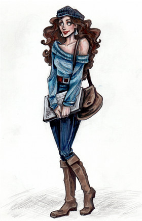 Yeah, she looks pretty exhausted. I really like her shoes!! And the bag looks great! I tend to skimp when drawing accessories (and backgrounds, especially) because I find them less interesting - but your bag is really cool-looking!