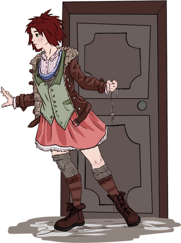 she's very pretty. The drawing looks as if she was running away from somewhere (like an orphanage or the sort)