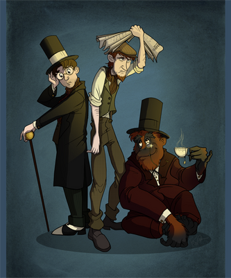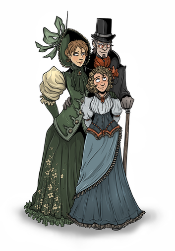 I kind of...really love this? The change in Hawkins' posture and behaviour is so clear, but the designs fit together very well and it makes you wonder about his character! Mylena and Emily's designs are also really good - I like the small differences and the way you can tell they're relatives, and even though they look like they have different personalities, they might also share some quirks. Excellent work!