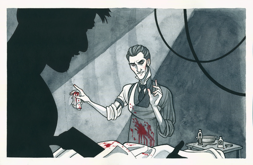 I keep coming back to this one--it is so well done and I love the morbid sense of humor! Hawkins' expression is priceless--he is enjoying Emily's squeamishness too much!