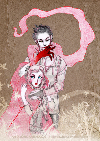 Once again, amazing stuff--reminds me of some of the cover work done for Grimm Fairy Tales' "Beyond Wonderland" and its sequel. I love the color scheme--black and red go so well together, and the expressions on both the wolf and the girl ^^