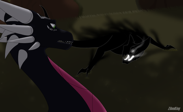 The dragoness quivered as the shadow approached her. At first nothing happened. Then all of a sudden she felt a shadowy paw grab at her hind leg.