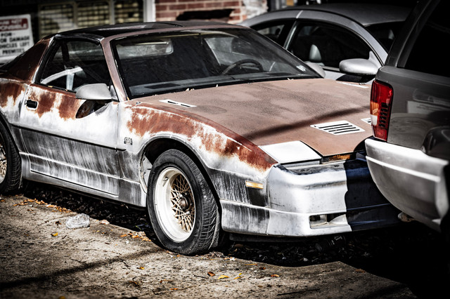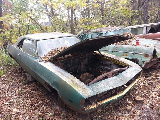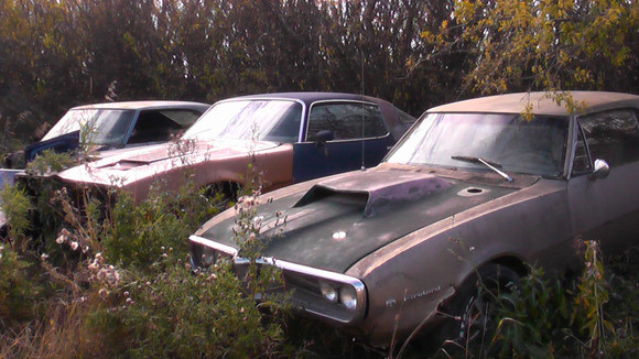 1979-1981 Pontiac Firebird, and sadly, it's here for a reason. This 'Bird is so rotten that it's bending to the position of the rims it rests on, and hopefully will be picked clean before the crusher takes it's life...Related content