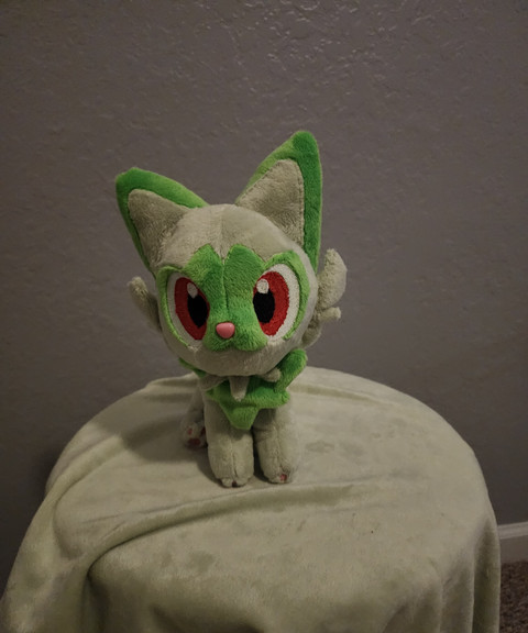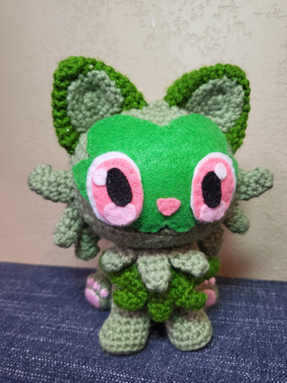 And, despite the litany of technical issues that the game suffers from, I ended up really loving it! And whenever I get really invested in a new game, I always find myself wanting to make a character from said game to put on my desk. So here's Sprigatito, the starter Pokémon I chose for my Violet playthrough. At just over 4 inches tall, Sprigatito looks ready to head out on another Paldean adventure!