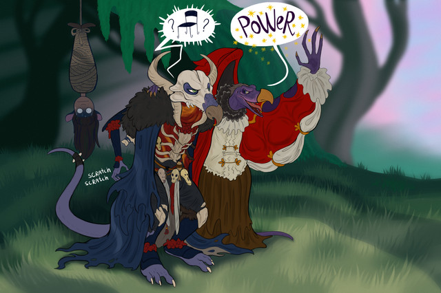 Here's a little personal headcanon on what these three specific Skeks looked like back when they were young. There's a lot of evidence that the Skeksis used to be floofy (for example, SkekSa being the queen of floof and of course SkekUng being all fuzzy even when old), and I decided to exploit that idea.