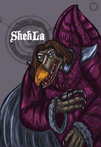 I also kind of took liberties with their coat of fur/feathers. SkekVar is based of a bald eagle, SkekSil is a vulture, and SkekSo is a raven. C'mon, it makes sense!