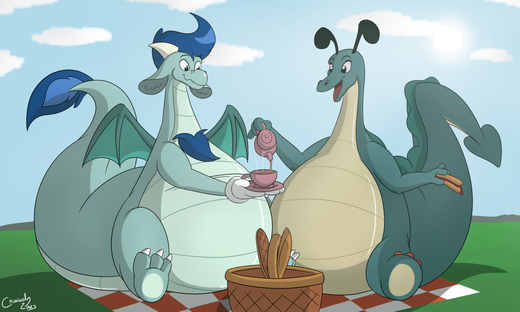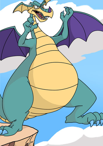 This was a little practice getting back into fully (well kinda) detailed backgrounds. It's also because I was just really wanting to draw the Relunctant Dragon (the inspiration for all heavy bottom dragons)This is also including my best friend because I have an idea of both our dragons (and some friends) in a world with all the famous dragons