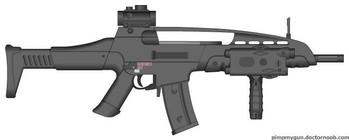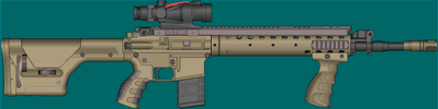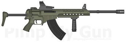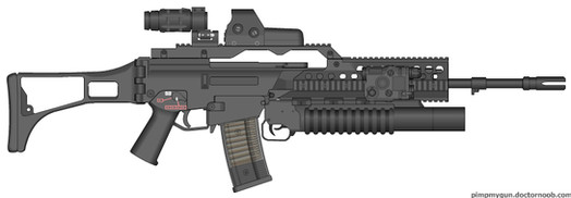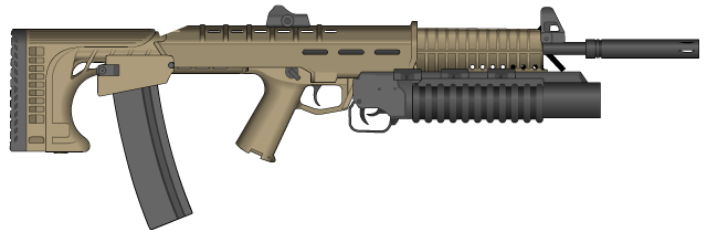 This 7.62x54mm Assault Rifle is loosely based off of HK's G36C.This particular weapon has an undermounted 12G shotgun designed for door breaching, riot control, etc.