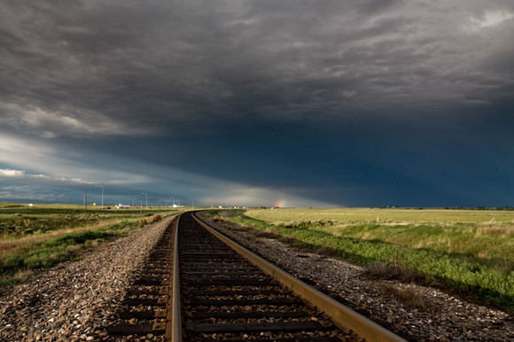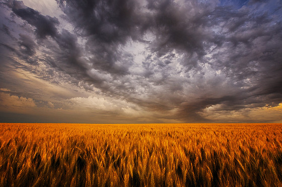 5/16/2010 - Western OklahomaIn this shot is one of many thunderstorms that danced across the Great Plains of western Oklahoma this particular day. The wheat was still in its vibrant green state and the newness of spring was still in the air. Water irrigation piping sits unused and unneeded on the side of this field as the spring thunderstorms quench the thirst of the earth. It even provide me with a hint of a rainbow...