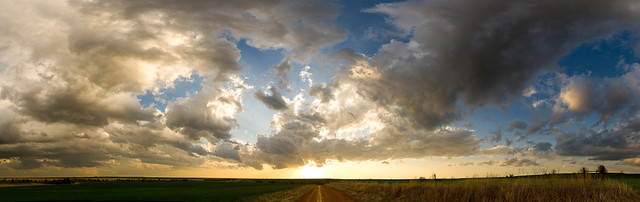 5/16/2010 - Western OklahomaOn a day full of multiple thunderstorms marching across the state, this particular storm sparked a brief amount of interest. I caught up with it while backtracking back home after chasing the storm complex that dumped record amounts of hail on Oklahoma City. For a brief time, it formed a very recognizable rotating base before it somewhat spiraled apart and lost energy. Here it appears to be in chaos in the midst of building in parts while falling apart in others...