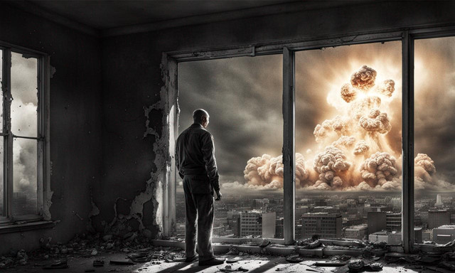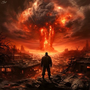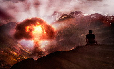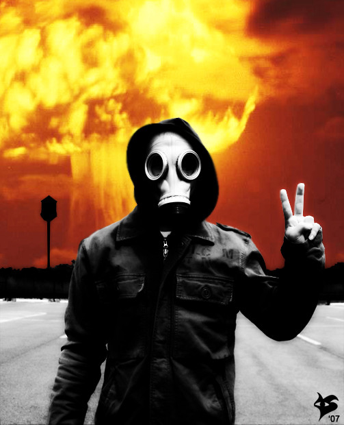 Very good! Im not sure if I like the mushroom cloud being directly above his head though... its a bit ditracting having everything dead centre. Just a thought :-/ The feeling is very clear