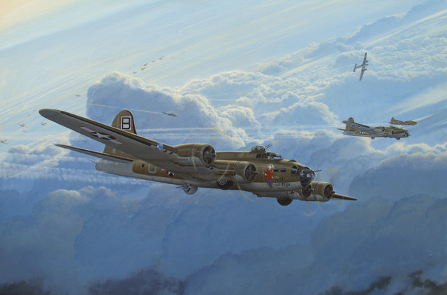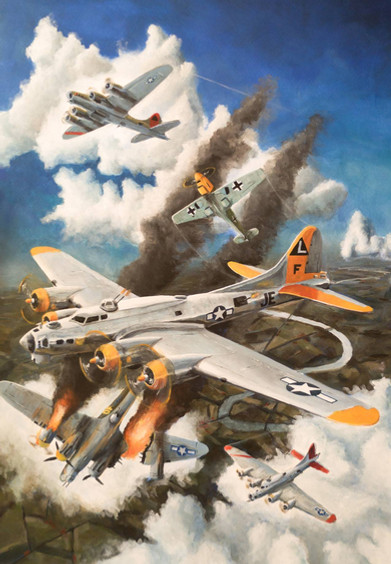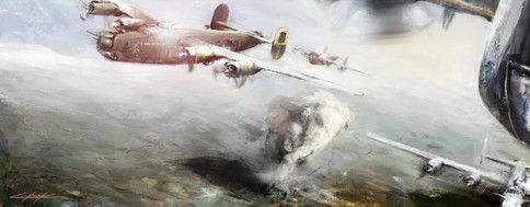 Well, I finally finished this one! It took a lot longer than expected and I had a difficult time settling on a background. After 3 attempts, I finally decided to go with this one. I spent more hours than I care to try to estimate, but hopefully it payed off. Dimensions are 42 inches W x 22 inches H, at 300 dpi and this was painted in Photoshop.This is a B-17G Flying Fortress, christened as 'Thunderbird', from the WWII era. I used a photograph I took of the plane at an airshow as reference.