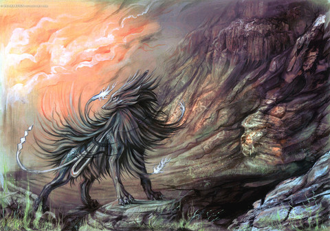 Wow... that's amazing!! Those clouds are so smooth, and how the creature comes out of the rock.. wow, beautiful. The reflections and the feeling of freedom make me giddy. <3